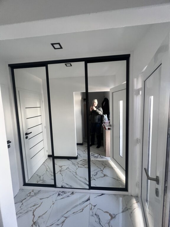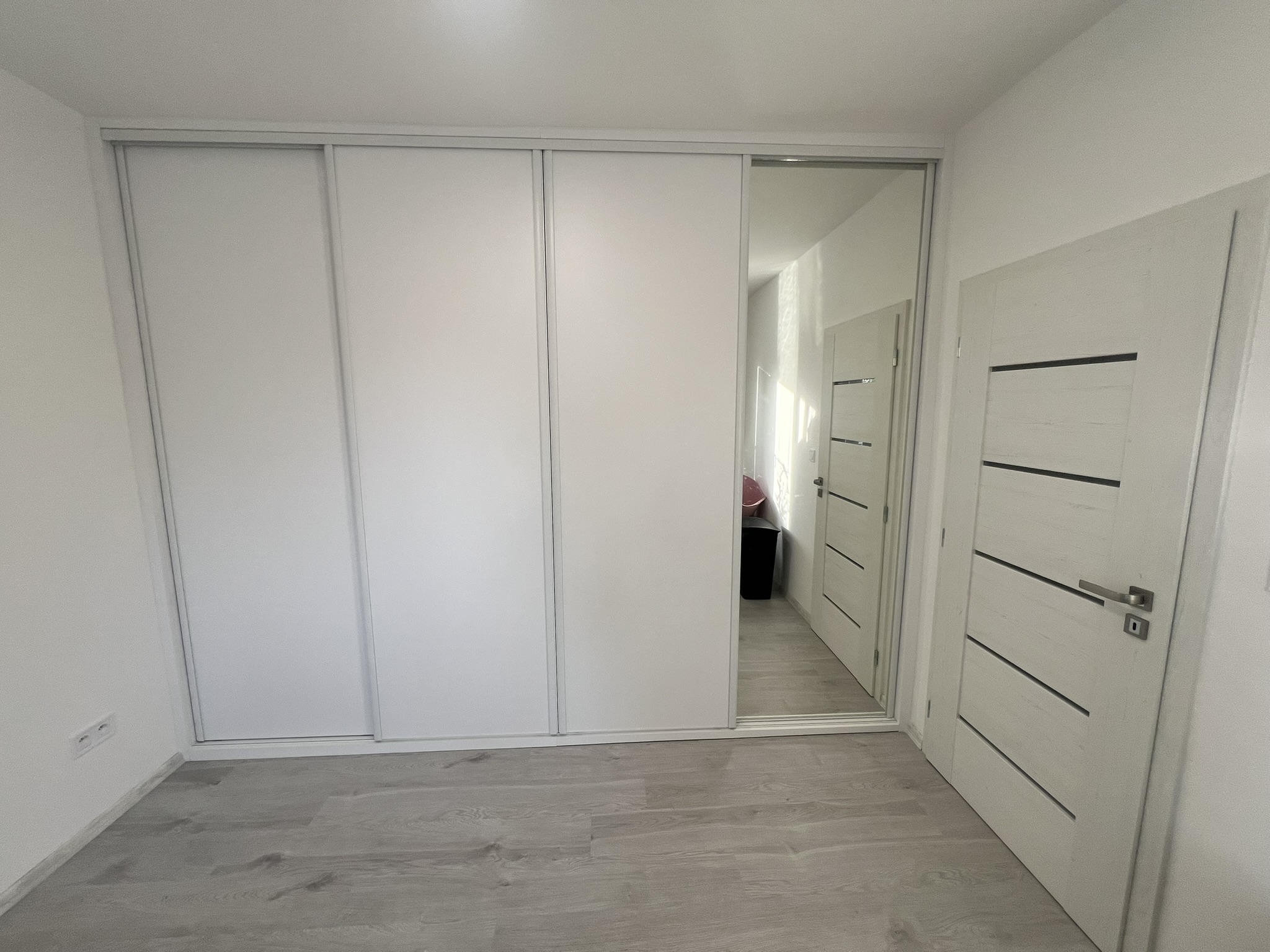 Nadčasová bílá vestavěná skříň s zrcadlem